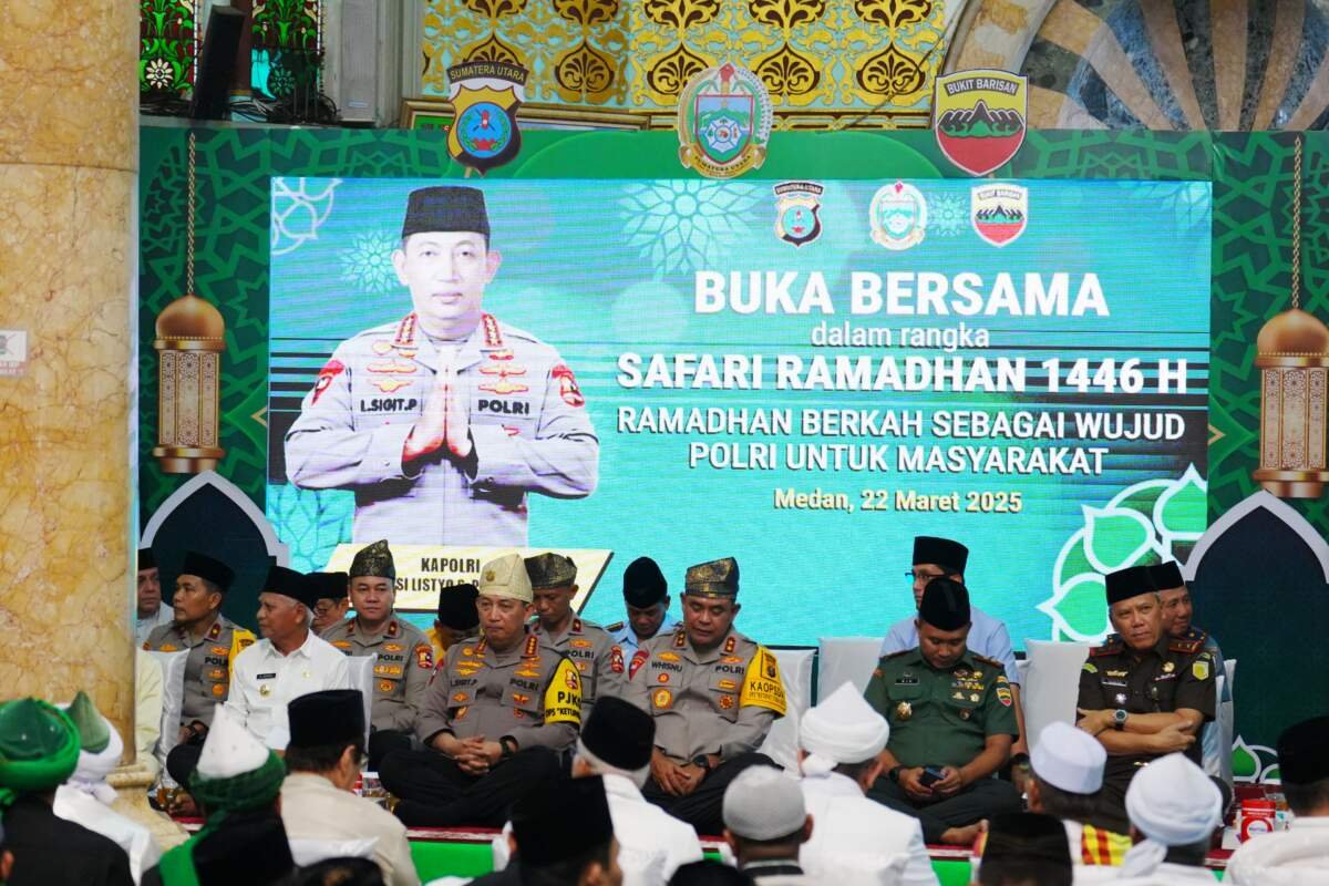 Medan – Kapolri Jenderal Polisi Drs. Listyo Sigit Prabowo melaksanakan Safari Ramadan ke Masjid Raya Al Mashun Medan, Sabtu (22/3/25). Kunjungan Kapolri turut didampingi oleh Kapolda Sumatera Utara, Irjen Pol. Whisnu Hermawan Februanto, dan Pangdam I/Bukit Barisan, Mayjen TNI Rio Firdianto.